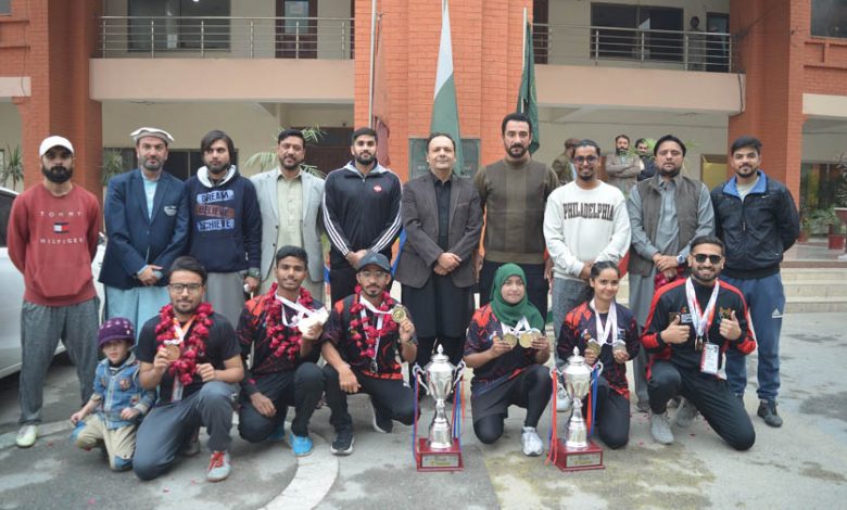 Following their outstanding and historic performance at the 35th National Games 2025 in Karachi, the Khyber Pakhtunkhwa (KP) Teqball team returned home to a grand and enthusiastic welcome in Peshawar.
