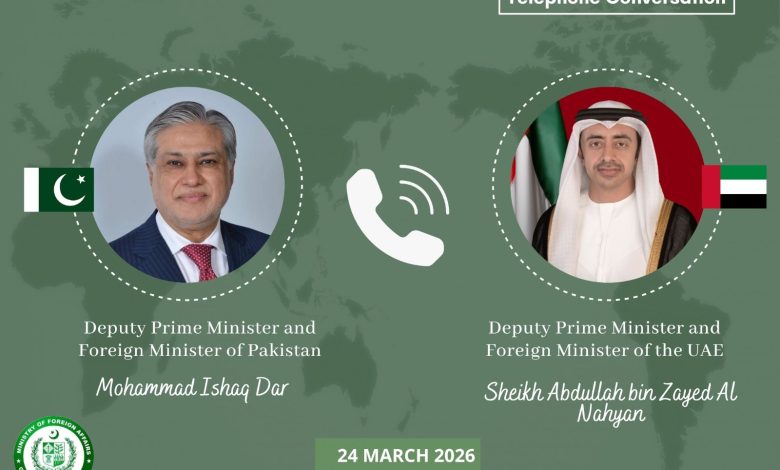 The DPM/FM spoke with his UAE counterpart and underscored the importance of peace and stability, calling for immediate de-escalation and emphasizing that dialogue and diplomacy remained the only viable path forward, the Foreign Office Spokesperson said in a press release. Dar also expressed deep sorrow over the loss of precious lives, including three Pakistani nationals, and reaffirmed Pakistan’s steadfast solidarity with the UAE.