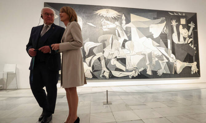 Steinmeier had addressed the Spanish parliament before viewing the painting, warning that “extremist and populist movements are gaining strength in our societies” and attacking “the pillars on which liberal democracies are based.”