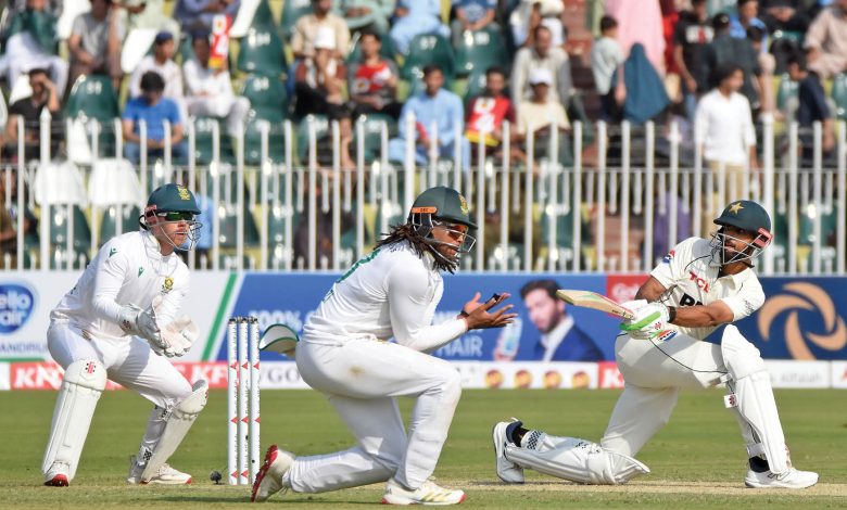 Skipper Shan Masood, dropped on 71 off a luckless Keshav Maharaj, top-scored with 87 while Abdullah Shafique — dropped four times — made 57.