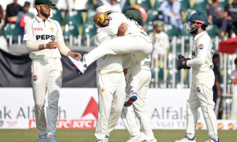 Resuming day two at 259-5, Saud Shakeel and Salman Ali Agha stabilised the innings, adding 70 for the sixth wicket.