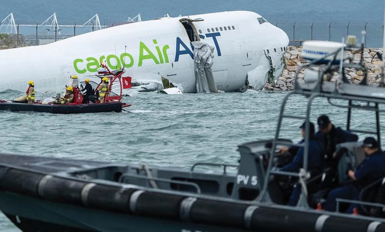 Two dead after cargo plane skids off Hong Kong runway into sea