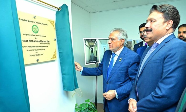 نائب وزیراعظم سینیٹر محمد اسحاق ڈار نے قونصلیٹ جنرل آف پاکستان نیویارک میں قونصلر سروسز ایریا کا افتتاح کیا