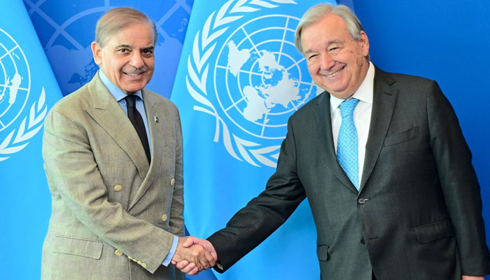 وزیراعظم شہبازشریف نے اقوام متحدہ کے سیکرٹری جنرل انتونیو گوتریس سے ملاقات کی جس میں وزیراعظم نے مسئلہ کشمیر ، بھارت کی جانب سے سندھ طاس معاہدے کی خلاف ورزی اور پاکستان میں دہشتگردی اسپانسر کیے جانے کا معاملہ اٹھادیا۔