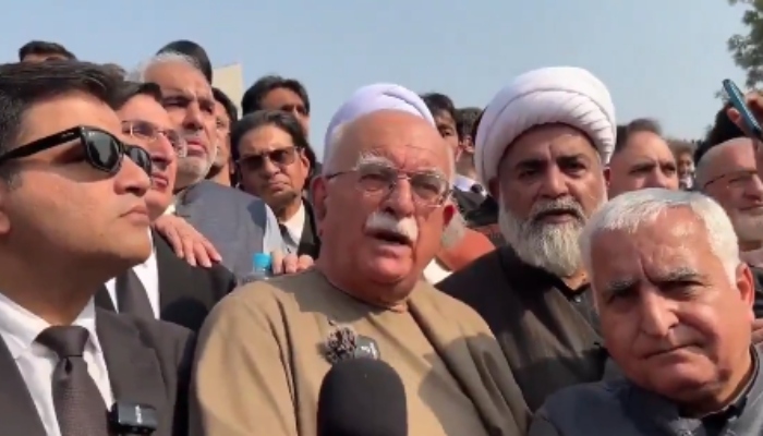 اپوزیشن کے احتجاج میں بیرسٹر گوہر، اسد قیصر اور محمود خان اچکزئی سمیت اپوزیشن رہنماوں نے شرکت کی۔